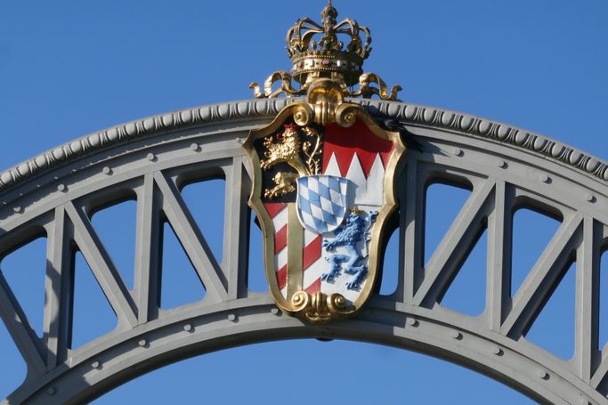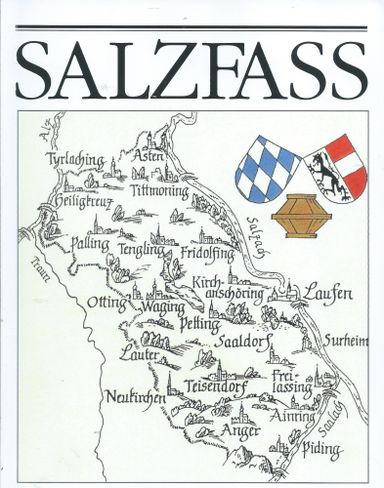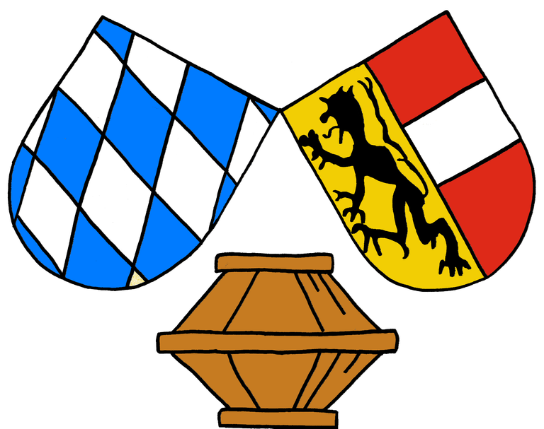 Das Salzfass, die weiß-blaue Raute Bayerns und das Wappen des Landes Salzburg