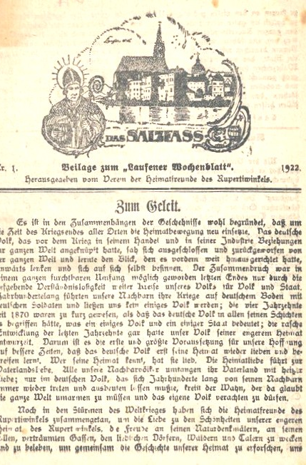 veröffentlichte bereits ab dem Jahr 1922 das Salzfass als Beilage zum Laufener Wochenblatt.